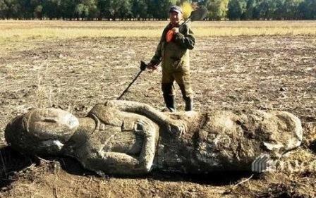 په دې تصویر کې یوه مجسمه او ورسره یو سړی ولاړ ښکاري. د سړي نوم ارکین توربایوف، د کرغزستان د ” ایسک کول” سیمې یو کروند ګر دی.