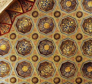 Cairo, Egypt – November 15 2023: Ceiling of the Qalawun complex that hold the mauloleum of the Mamluk empire sultan in Cairo