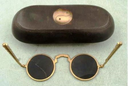 د عینک دغه فریم په لومړي ځل چین کې د شمشتۍ له کلک پوټکي یا د نرم ښکر څخه جوړیدل پېل شول. په دې کې به شیشه بنده وه او د کاغذ په سر نرۍ توري يې پرې لوستل.